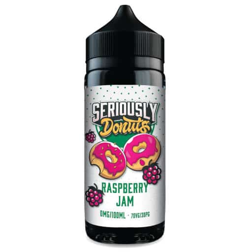 Seriously Donuts Raspberry Jam E-liquid Shortfill. Gorgeously Sweet Raspberry Jam oozing from the centre creating a Fruity layer between each bite!