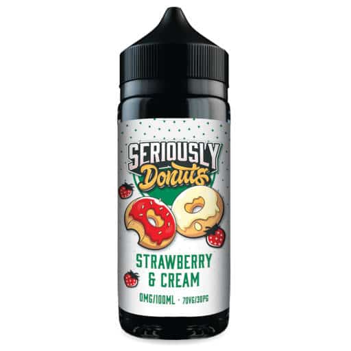 Seriously Donuts Strawberry and Cream E-liquid Shortfill. Everyones Favourite combination of Thick Luscious Cream and Sweet Strawberries.